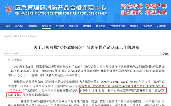 11月新规公告,可燃气体探测报警器类产品纳入3C认证